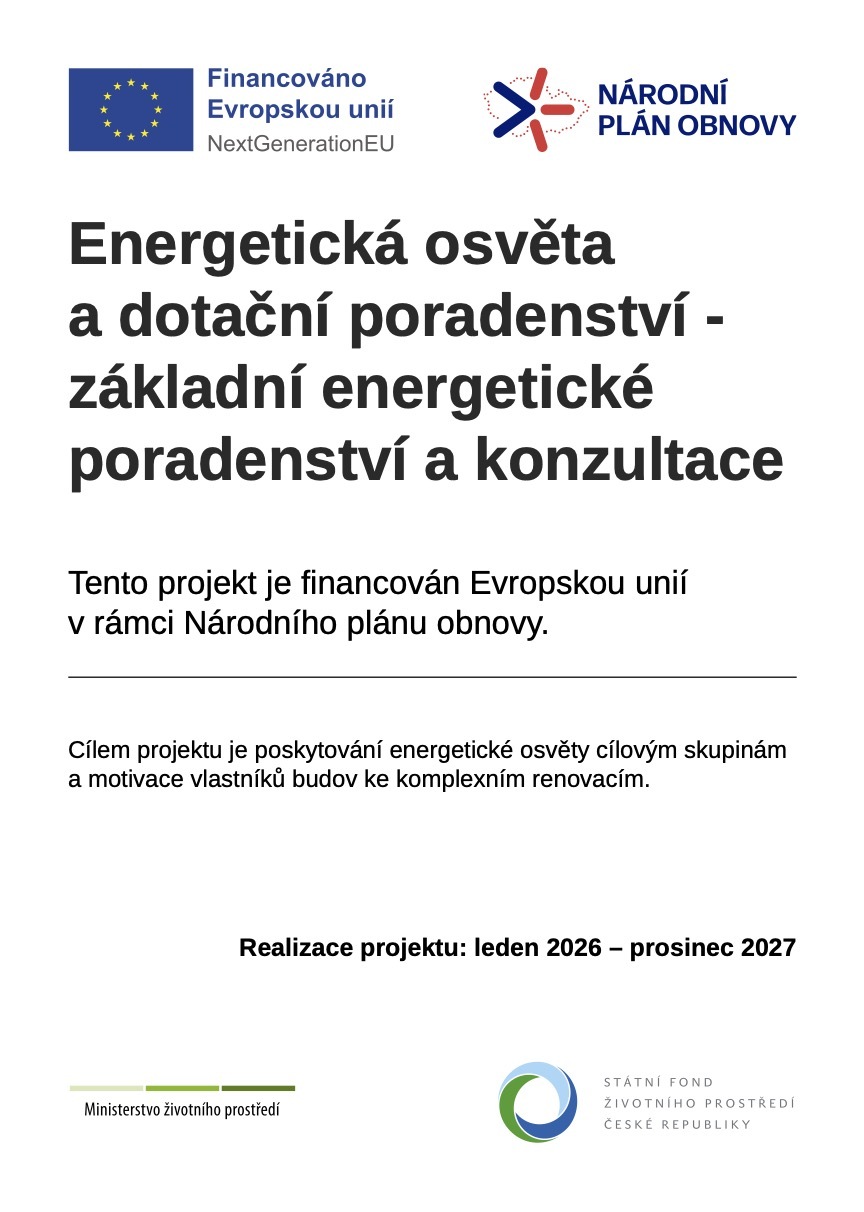 Národního programu Životní prostředí (NPŽP). Cílem projektu je poskytování energetické osvěty cílovým skupinám a motivace vlastníků budov ke komplexním renovacím.